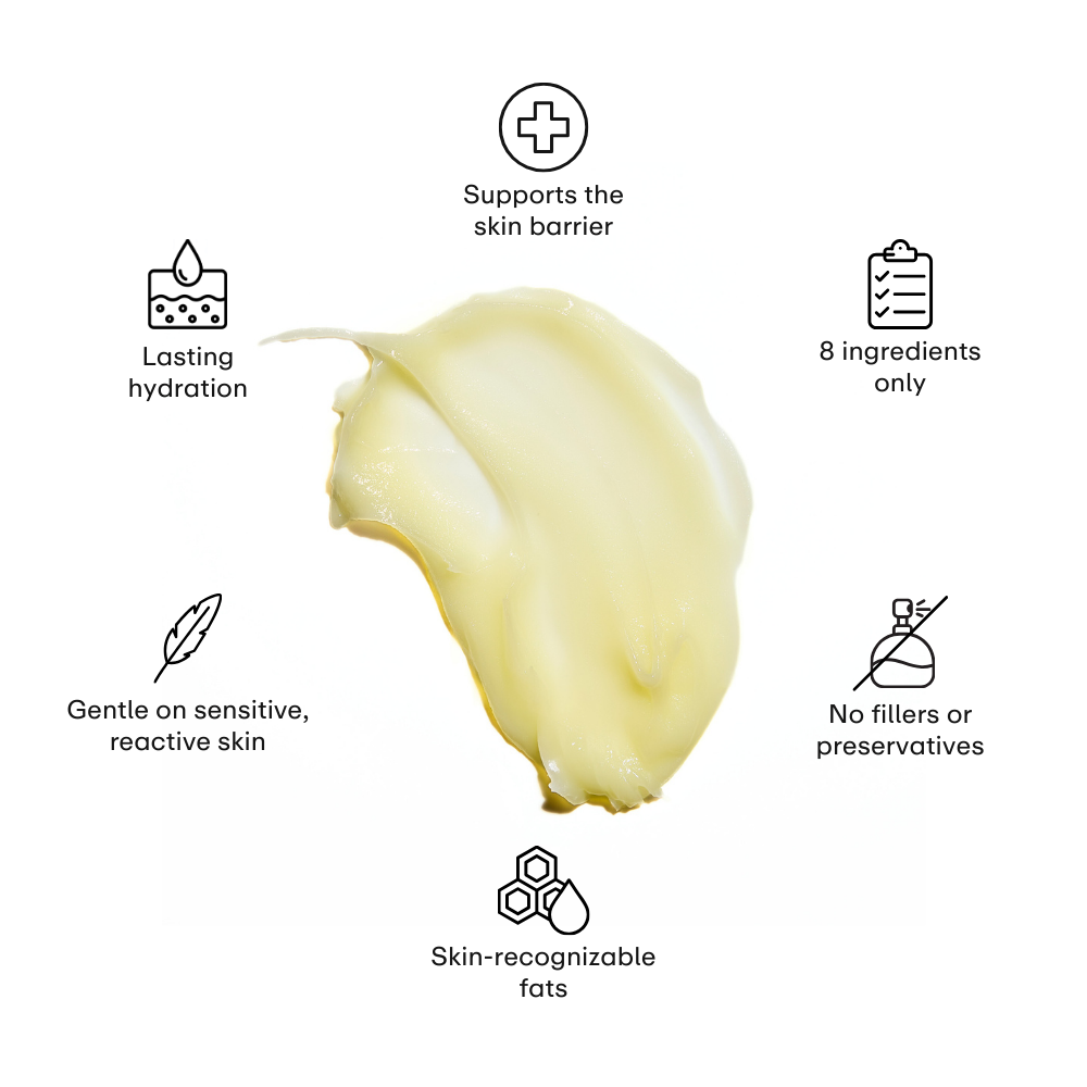 Formulated for sensitive, easily irritated skin. Golden Hour is built with only eight ingredients led by grass-fed Tasmanian tallow, so close to your skin's own oils that your body absorbs it instead of reacting to it. Manuka honey extract to calm and soothe, with a naturally-derived vanilla and coco scent that actually smells like something you want on your skin. GMP certified and made in Australia.